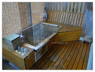 露天風呂正正就在大廳後面的小樓梯上,環境非常寬敞,並且有竹簾遮蔽,浸溫泉的人可以透過竹簾的小空隙欣賞鬼怒川的風景之餘,街外人又不會看到溫泉內的春光,保障私隱。